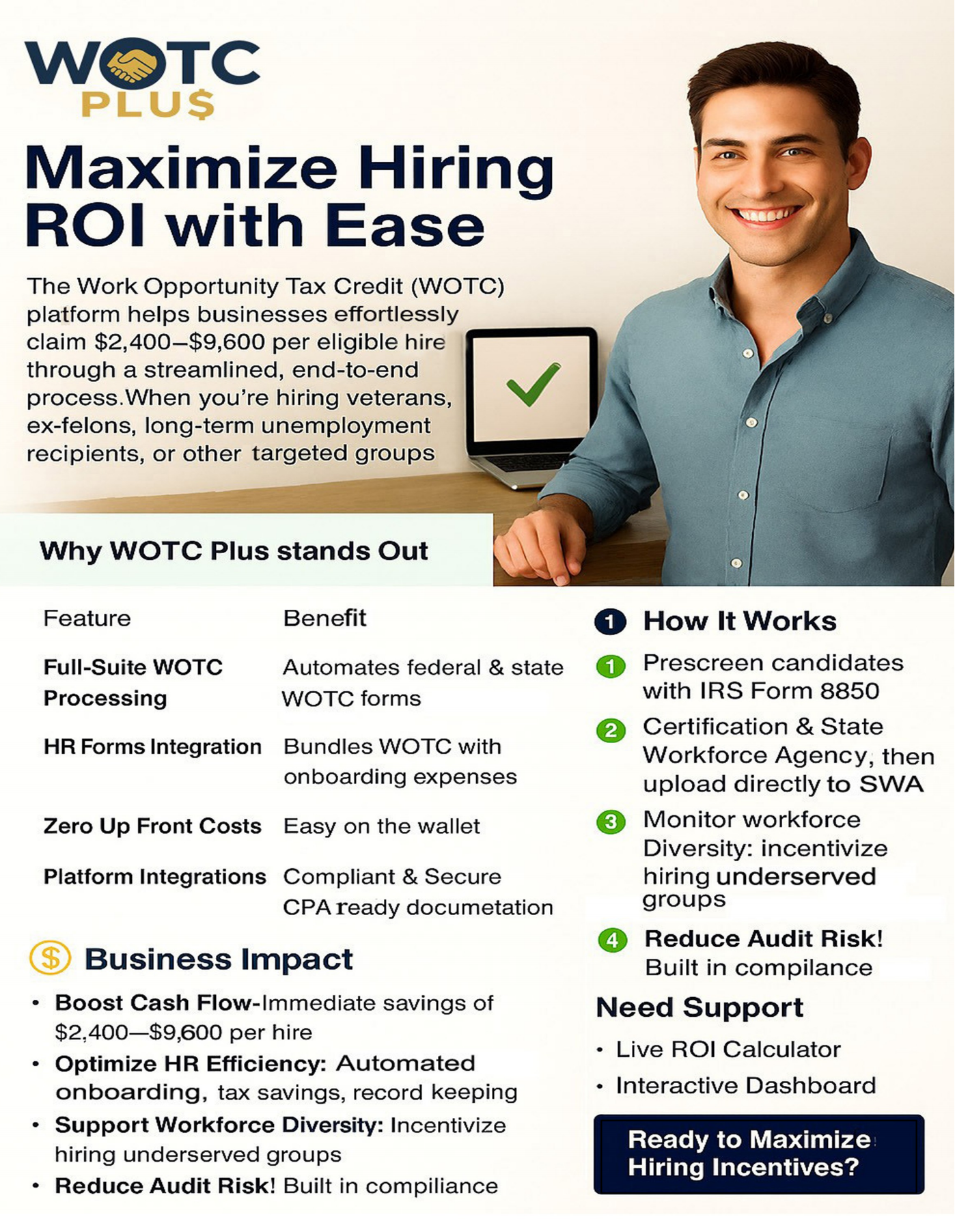 Many employers fail to claim WOTC benefits simply because they are unaware of the program or assume the process is too complex. With strict eligibility criteria and documentation requirements, businesses often struggle to manage WOTC applications effectively—missing out on substantial tax savings. That’s where WOTC Plus changes the game.
